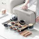 • LURRIER Gongfu tea sets, Portable Ceramic TeaSet, Asian Tea sets for adult, Tea Gift sets, Grey leather case, Portable Travel Bag,Home,Gifting,Outdoor and Office(Black and White)