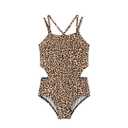 • LIZENS Girls' One Piece Leopard Swimwear Cut Out Spaghetti Straps Swimsuit Floral Beach Bathing Suit for Girls Toddler Kids, 7-8T
