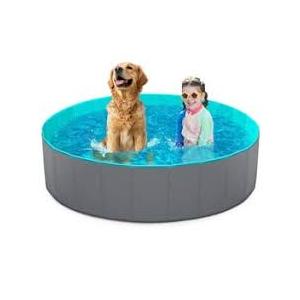 • SLOOSH Foldable Dog Kiddie Pool - Portable Hard Plastic Doggie Swimming Pool, Anti-Slip Collapsible Pets Bath Tub Suitable for Kids Indoor Outdoor Backyard Use (48" x 12", Blue)