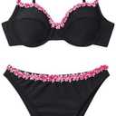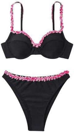 WDIRARA Women's 2 Piece Floral Embroidery Patchwork Bikini Set Backless Solid Cheeky Swimwear Sets M