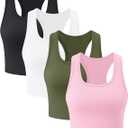 • 4 Pack Sleeveless Tank Tops for Women Racerback Cropped Workout Top Cotton Basic Running Yoga Gym Crop Top Shirts for Women, Medium