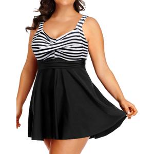 Women's Plus Size One Piece Swimsuit- Tummy Control Bathing Suit Ribbed Square Neck Swimwear 2025 14W