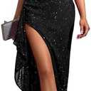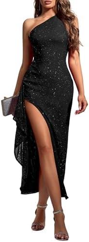 Parthea Women's Elegant One Shoulder Long Formal Sparkly Dresses Sequin High Split Evening Wedding Guest Party Maxi Dress Size M