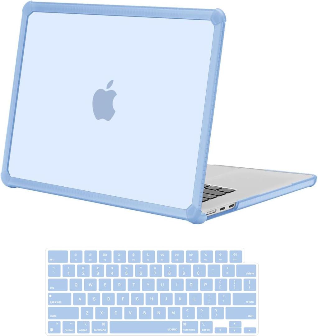 MOSISO Compatible with MacBook Air 15 inch Case 2025 2024 2023 Release M4 A3241 M3 A3114 M2 A2941, Anti-Cracking&Anti-Fingerprint Heavy Duty Hard Shell with TPU Bumper&Keyboard Cover, Air Blue