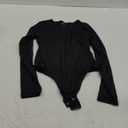 PUMIEY Women's Crew Neck Long Sleeve Bodysuit Second-skin Feel Tops Smoke Cloud Collection (Large, 01 Jet Black)