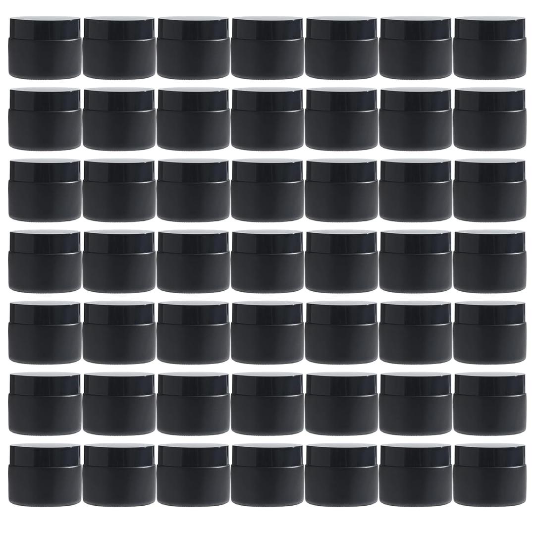 • OverNews 2oz Black Glass Jar Travel Size, 45PCS Empty Cosmetic Lotion Container with Black Lid & Spatula, Small Mini Jar for Beauty