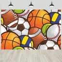 • 7x5ft Sports Backdrop Kids Sports Theme Birthday Baby Shower Party Photography Background Cartoon Basketball Football Baseball Decorations Banner Kids Portraits Photo Studio Props