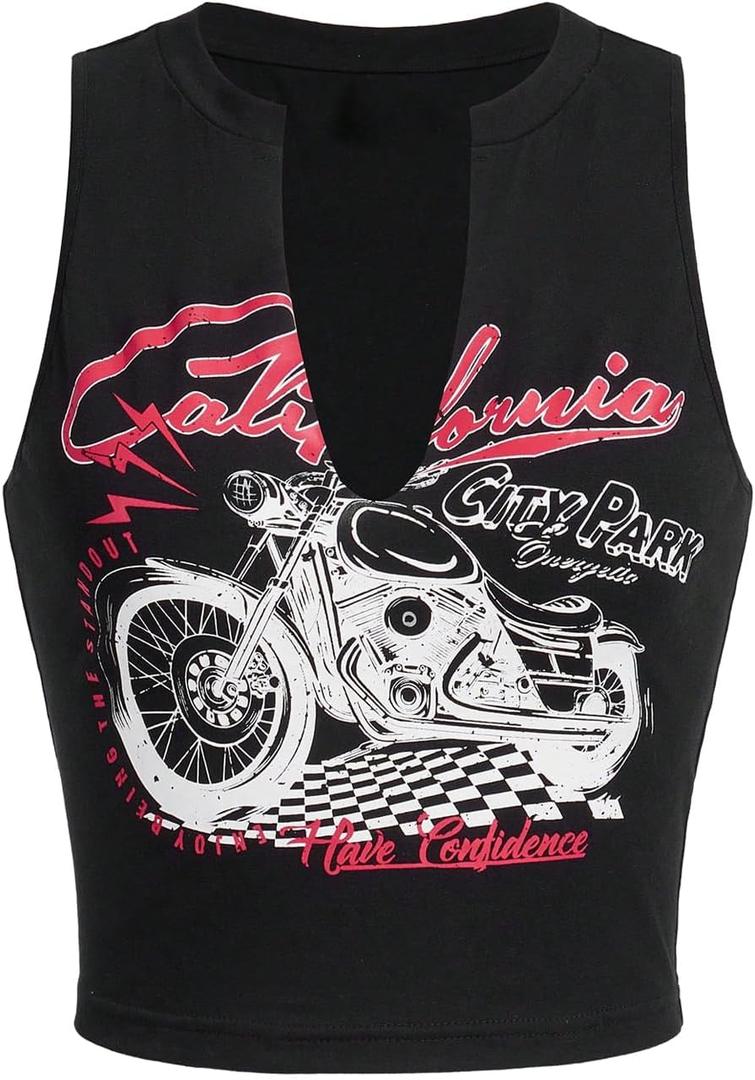 • SOLY HUX Women's Letter Graphic Tank Top Notched V Neck Sleeveless Summer Crop Tops Streetwear (Large, Black Motorcycle)