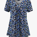 FOLUNSI Women’s Plus Size Short Sleeve Henley Shirt V Neck Floral Blouses Tunic Tops M-4XL