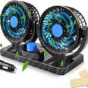 Car Fan 12V, 360 Degree Rotatable Car Fan, Electric 2 Speed Dual Head Fans-Low Noise Strong Dashboard Cooling Air Circulator Fan for Sedan SUV RV