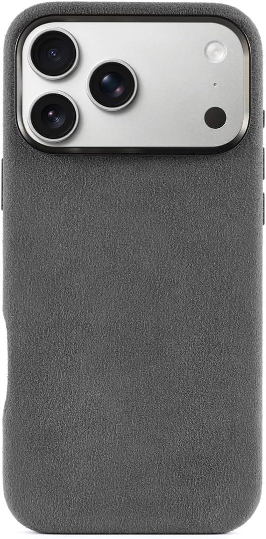 • Alcantara Full-Wrap Phone Case for iPhone 17 Pro Max 6.9", Compatible with Mag-Safe Wireless Charging, Handmade Full-Wrap Italian Synthetic Suede Cover (Gray)
