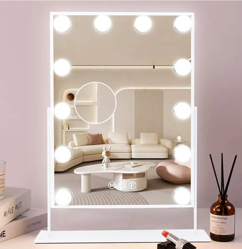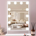 COOLJEEN Makeup Mirror Vanity Mirror with Lights - 12 Led Bulbs Lighted Hollywood Mirror, 10X Magnification,3 Color Modes, Touch Control, Women Gift (White)