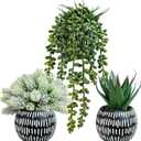 Winlyn Set of 3 Small Artificial Succulent Potted Plants Faux Aloe Hops Hanging Succulent in Black Concrete Planters for Gift Home Office Bathroom Living Room Wedding Windowsill Table Shelf Desk Dcor