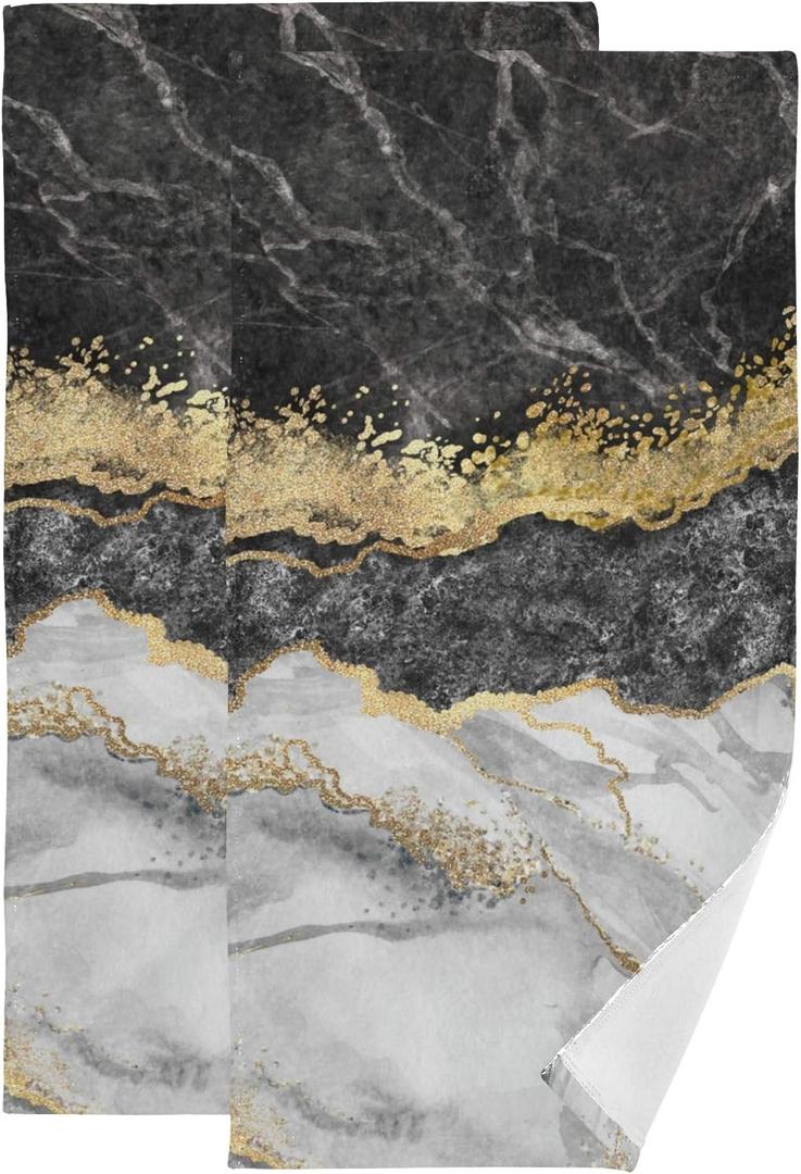 Bath Towels Set of 2 Hand Towels for Bathroom Cotton Gold Black Marble Decorative 28x14in Absorbent Soft (Color6)