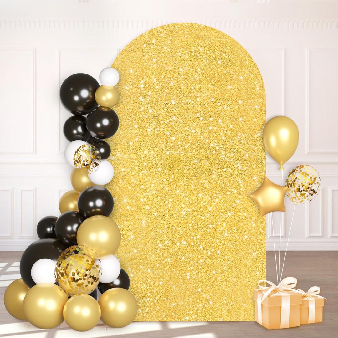Gold Arch Cover 7.2FT Sequin Wedding Arch Cover Spandex Fitted Arch Backdrop Cover Round Top Chiara Sequin Arched Backdrop Stand Covers for Baby Shower Banquet Prom Balloon Decorations