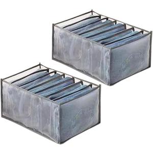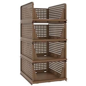 • Pinkpum 4 Pack Folding Closet Organizers Storage Box, Stackable Plastic Drawer Basket for Clothing, Stackable Storage Bins Shelf Storage Container for Closet Wardrobe Bedroom Bathroom Office (Toffee)