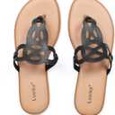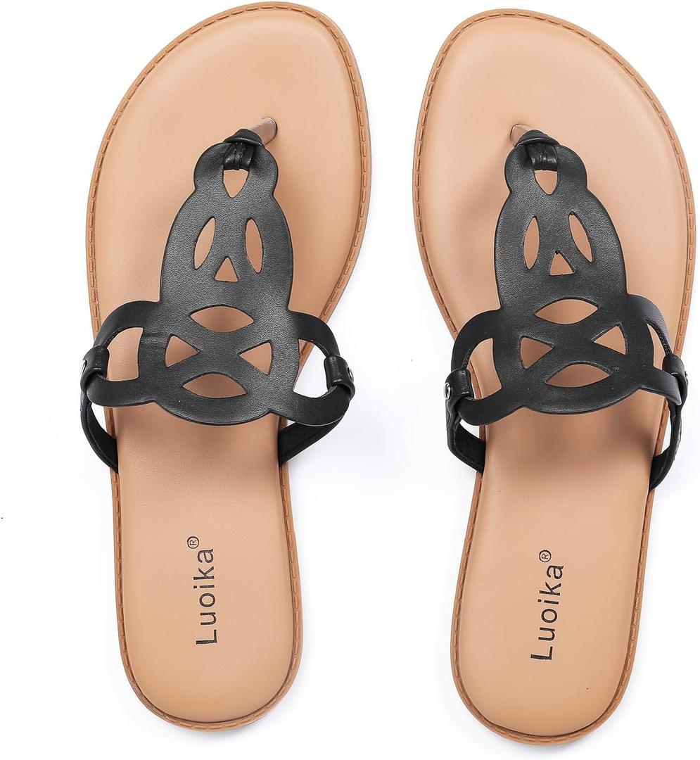 Luoika Women's Wide Width Flat Slides Sandals, Flip Flop Strappy Thong Sandals Comfortable Summer Beach Shoes for Women. (8.5 X-Wide, Black)