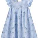 • Toddler Girls Ruffle Sleeve Cotton Linen Dress Sleeveless Baby Girl Back Tie Dress Kid Casual Sundress, Size 110 , Blue Floral