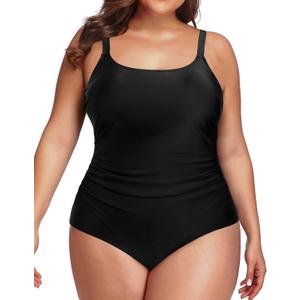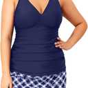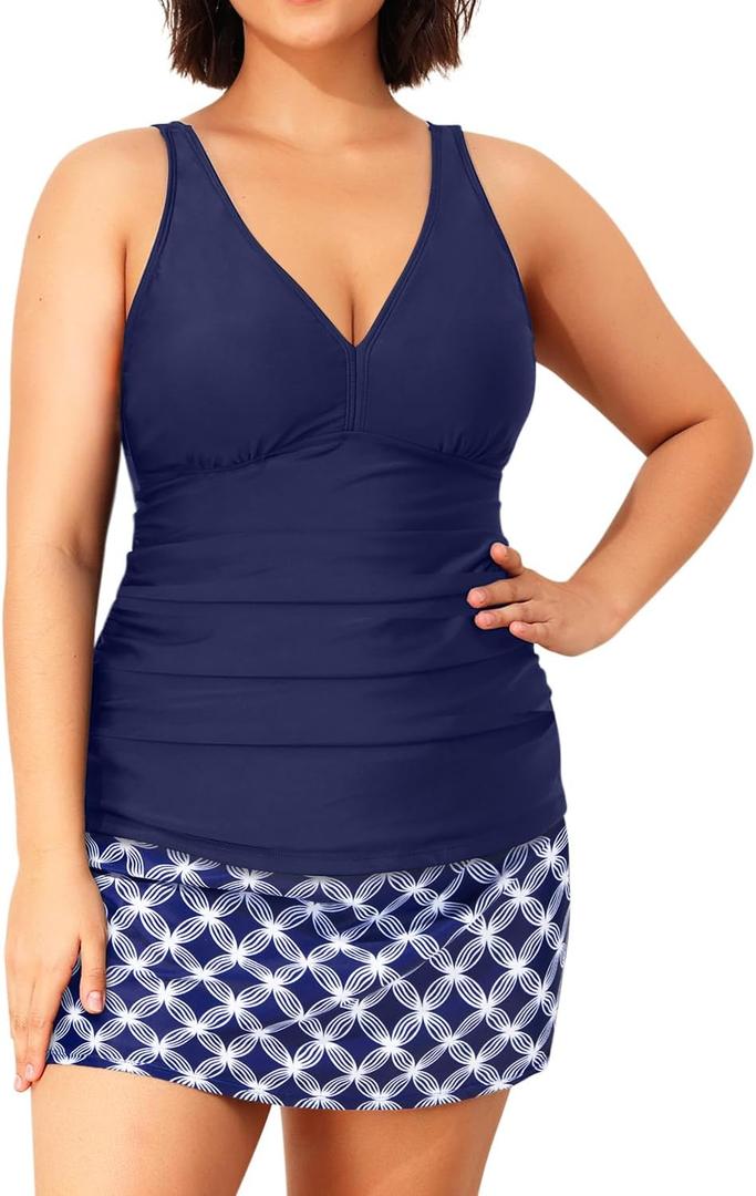 • Daci Women Plus Size Tummy Control Tankini with Skirt Two Piece Bathing Suits V Neck Swimsuits (Navy Blue, XL)