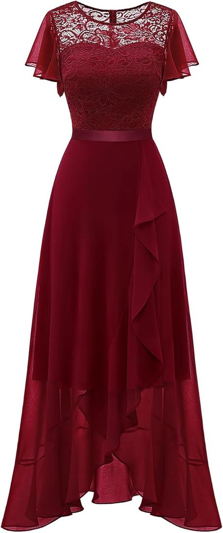 • BeryLove Formal Dresses for Women 2025 Wedding Guest with Slit Cocktail Elegant Lace Long Prom Dress (Small, Dark Red)