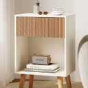 • Fluted Nightstand, Modern Bedside Table with Storage Drawers and Open Wood Shelf, Night Stand with Solid Wood Legs, End Tables Side Tables for Living Room, Bedroom (White+oak)